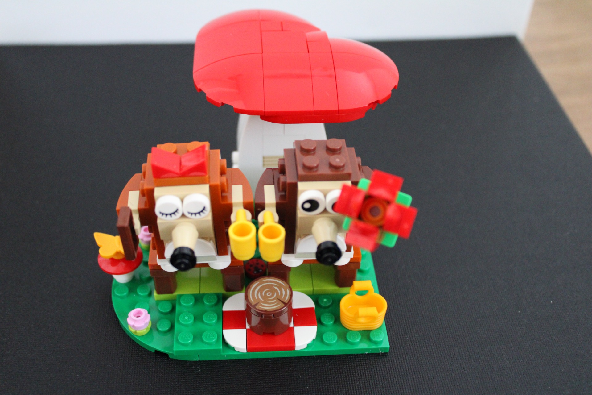 Tipp für den Valentinstag. Die 40711. Ein Set mit gerade 166 Teilen. Ich kann dies jedem oder jeder zum Valentinstag empfehlen. Im Set sind 2 Igel enthalten, die am picknicken sind. Es ist süss zum Anschauen und ist klein zum Aufstellen. Auf jedenfalls ist es ein Hingucker. Und für den Preis von 15 Franken ist es günstig.