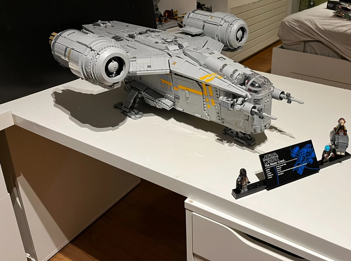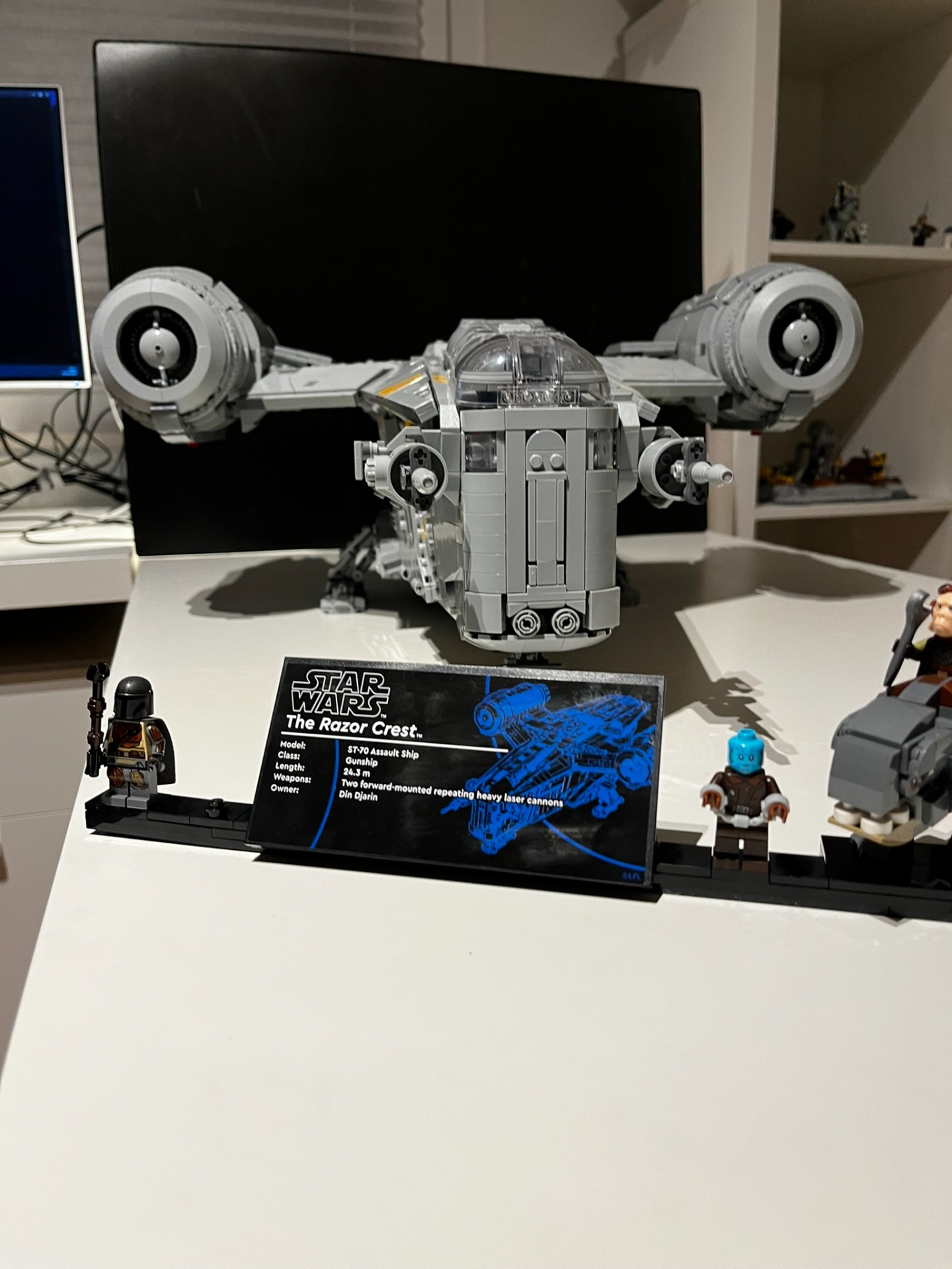 Die 75331 The Razor Crest mit 6187 Teilen ist ein sehr wertvolles Set in meiner Sammlung. Sie stammt aus der Star Wars Serie The Mandalorian. Die 4 Minifiguren, der Mandalorianer, der Mythrol, der Kuii und das Baby Yoda (Grogu) sind Bestandteile des Sets. Der Zusammenbau ist abwechslungsreich und birgt einige kleine Easter Eggs. Unter anderem findet man die Rüstungsteile von Boba Fett oder die Eier der Frosch Lady. Das Set ist stabil gebaut und sehr sehenswert. Es gibt jedoch viele Stickers, die das Erlebnis minimieren. Die gelben Streifen von dem Razor Crest sind Stickers sowie die Info-Tafel. Der Preis beträgt 650 Franken OVP. Ich habe mir das Set bei Manor mit Black Friday- Rabatt erworben. Für jeden eingefleischten Mandalorianer-Fan ist das Set ein Muss.
